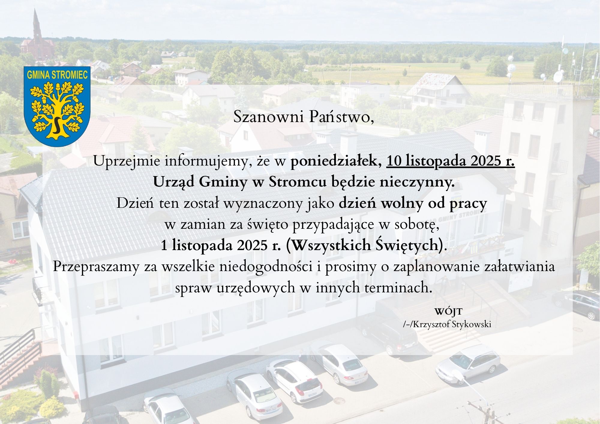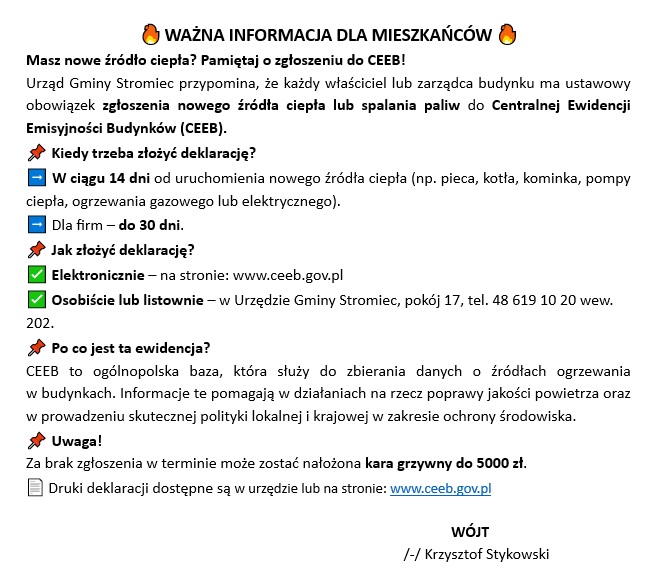 Komunikat Wójta Gminy Stromiec