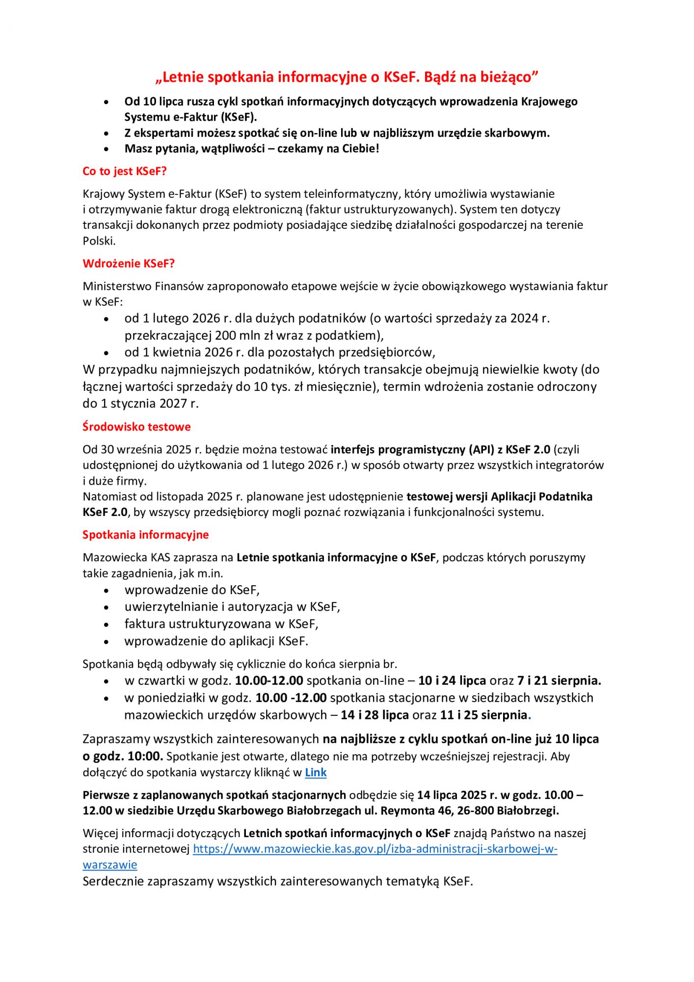 Letnie spotkania informacyjne o KSeF. Bądź na bieżąco