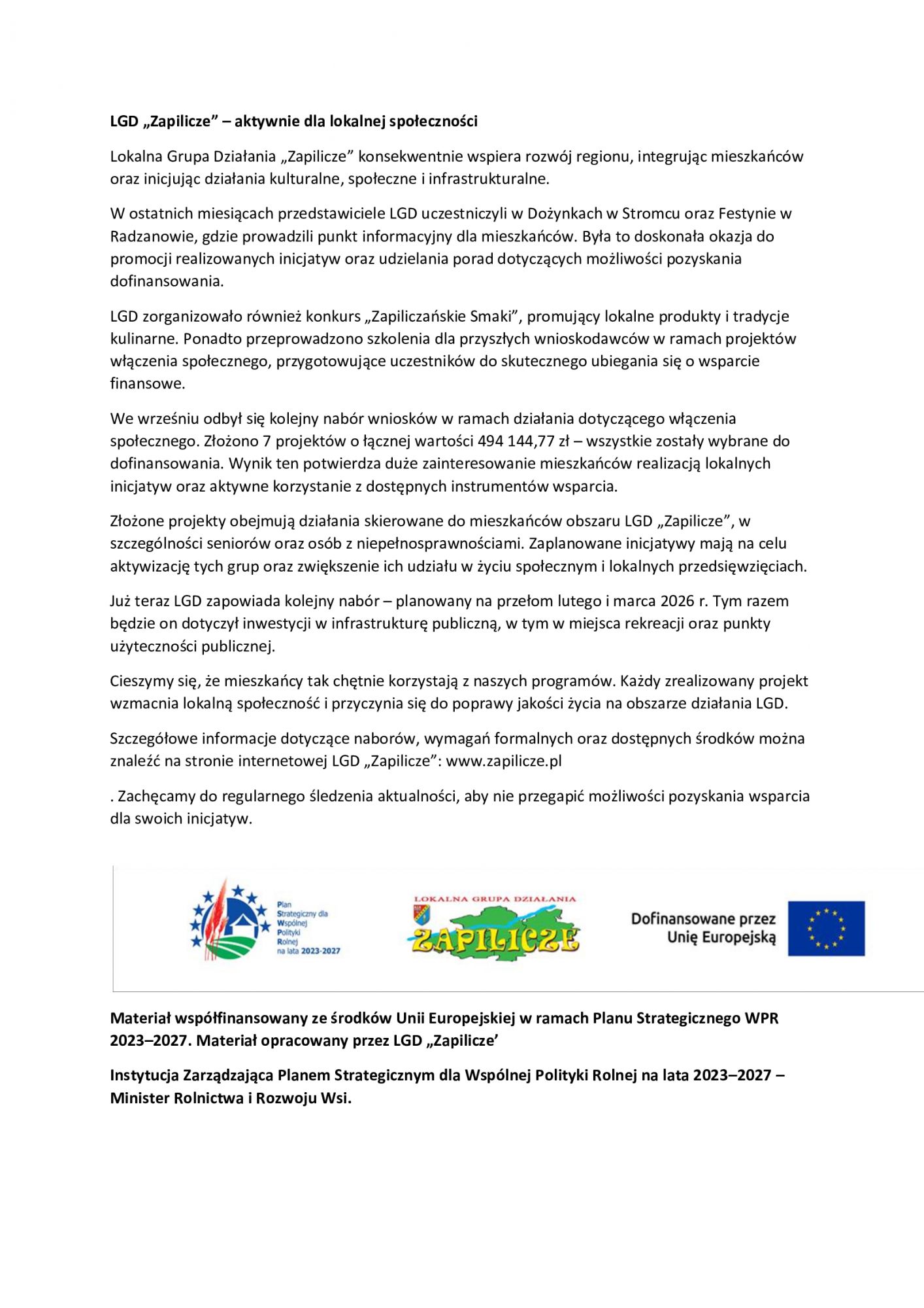 Zapilicze nabór wniosków