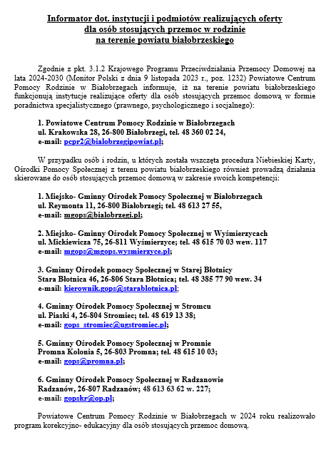 Aktualizacja bazę teleadresową przemoc domowa