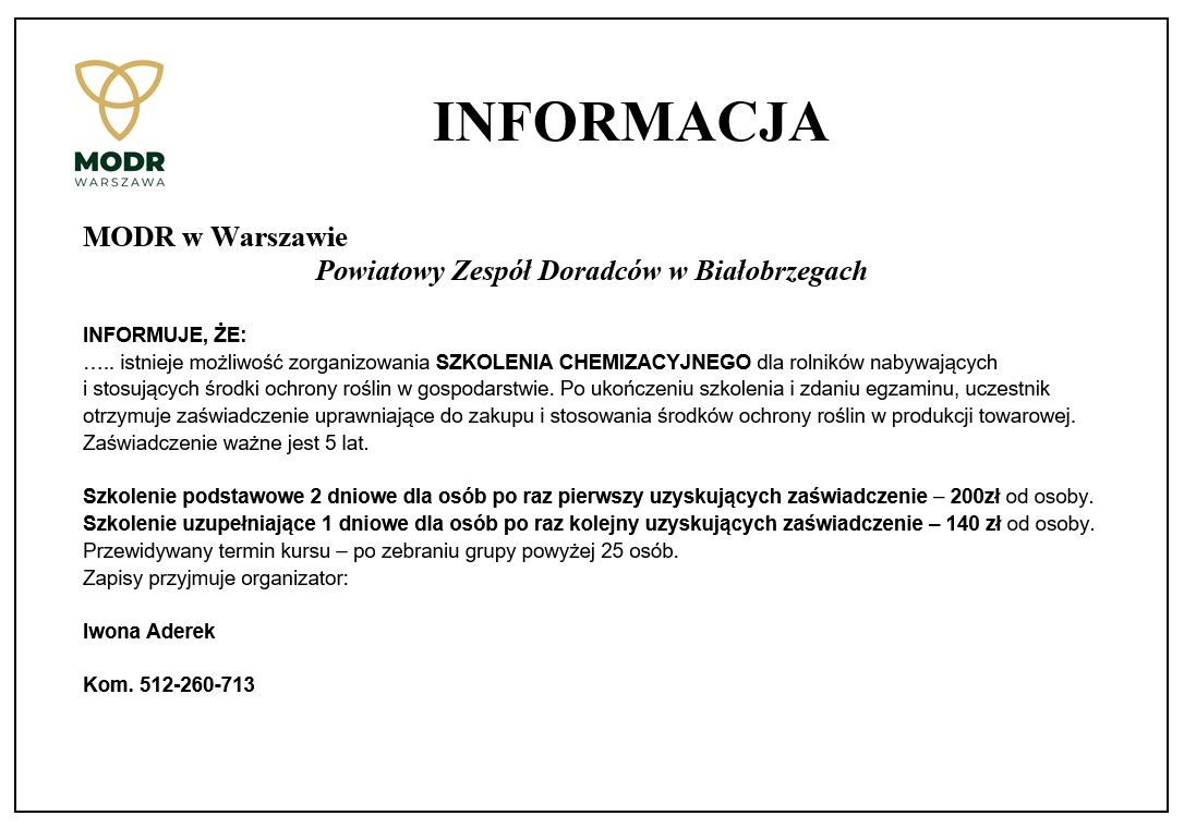 Szkolenie chemizacyjne Powiatowy Zespół Doradztwa Rolniczego w Białobrzegach