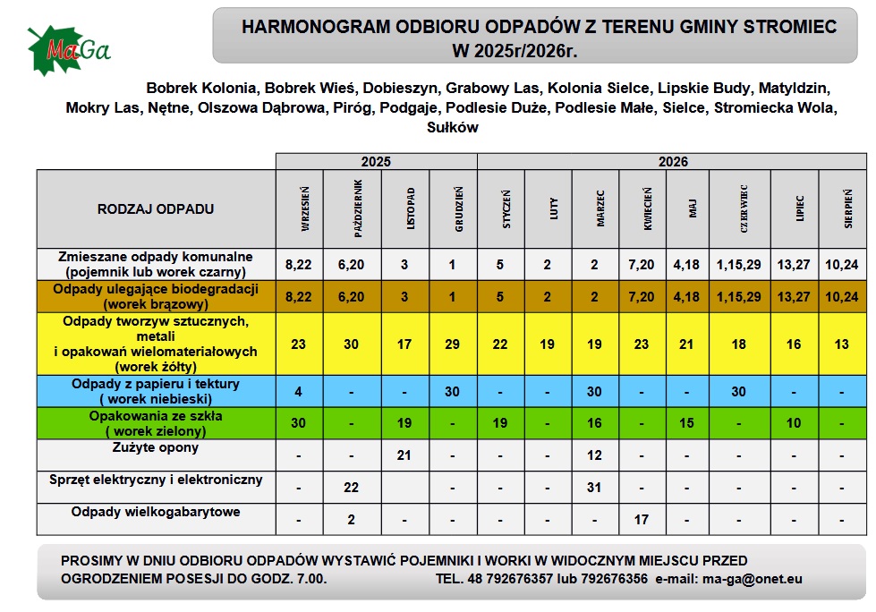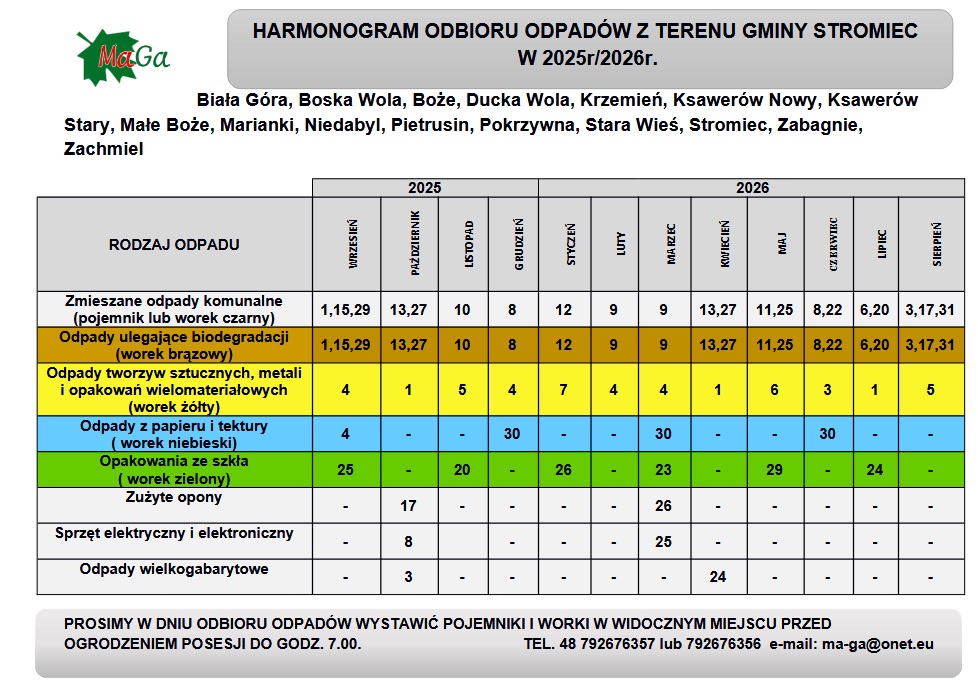 Podmioty wpisane do Rejestru działalności regulowanej w zakresie odbierania odpadów komunalnych od właścicieli nieruchomości na terenie Gminy Stromiec